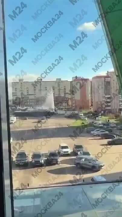 Мощные струи воды поднимаются вверх на несколько метров. Очевидцы переживают, что это может быть прорыв трубы с кипятком.