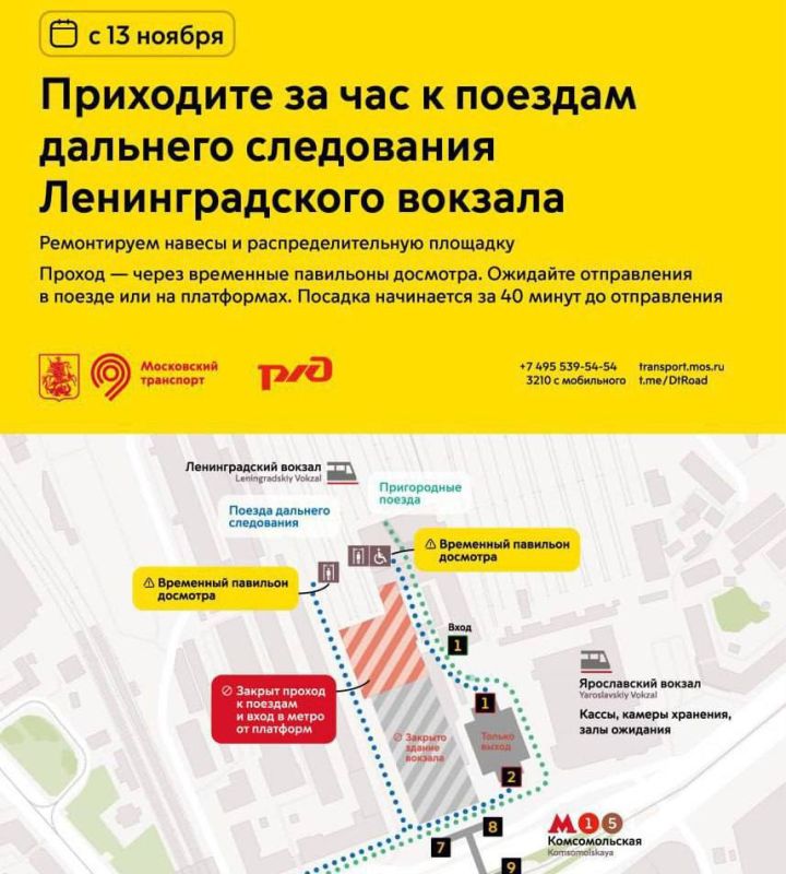 Важные изменения в работе Ленинградского вокзала: с 13 ноября проходить к поездам дальнего следования и «Сапсанам» нужно будет через один из двух временных павильонов для досмотра. Специалисты приступят к ремонту распределительной площадки и платформ.