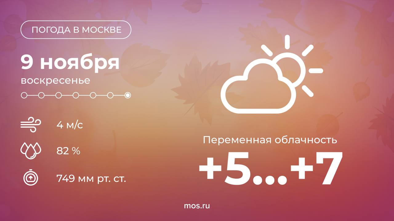 Доброе утро! Сегодня в Москве ожидается переменная облачность, без осадков. Температура воздуха днем поднимется до +7 °С.
