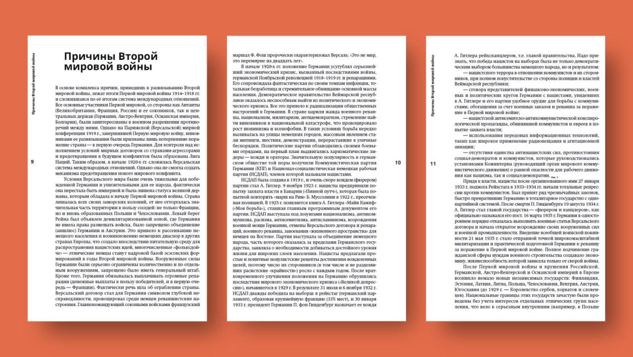 В представленном издании на базе подробной фактологии рассмотрены не только ход Второй мировой войны, но и её предпосылки — от подписания Версальского мирного договора до капитуляции Японии.
