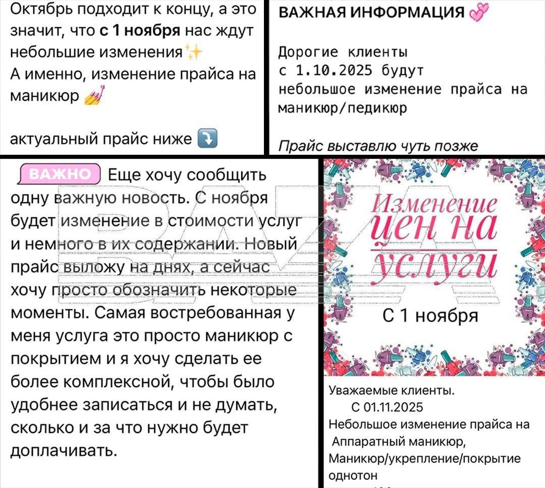 По данным «Базы», в ноябре частные мастера и профессиональные студии объявили о новом повышении цен, в среднем на 30%. Одни — уже подняли, другие — предупредили, что это случится вот-вот. Сейчас большую часть продукции — гели, базы и топы — поставляют из Южной Кореи, Китая и Европы. Исходное сырьё для них подорожало, а стоимость доставки из Азии выросла из-за удорожания контейнерных перевозок. Часть мастеров также называет причиной изменения цен рост стоимости аренды.