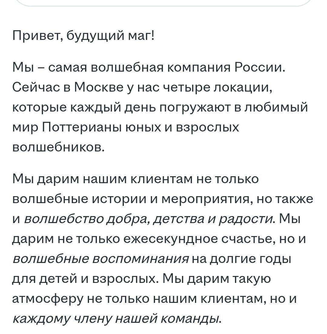 В московский Музей Гарри Поттера срочно требуются волшебники. Магглов, желающих прикоснуться к магии, стало так много, что нынешняя команда не справляется с наплывом посетителей.
