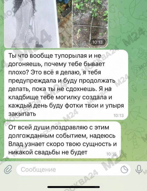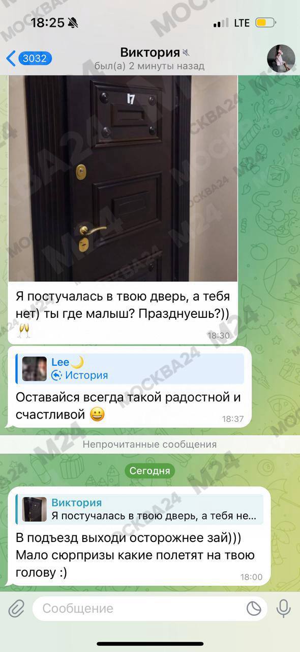 По словам певца, его жена постоянно находится под психологическим давлением и не раз обращалась за медпомощью к специалистам. Из последних сообщений с угрозами: фотографии двери квартиры семьи и фото ребёнка на могиле.