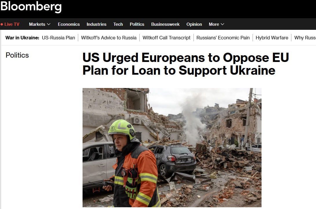 Bloomberg пишет, что США призвали Европу выступить против плана ЕК по предоставлению помощи Украине в виде кредита за счет российских активов: