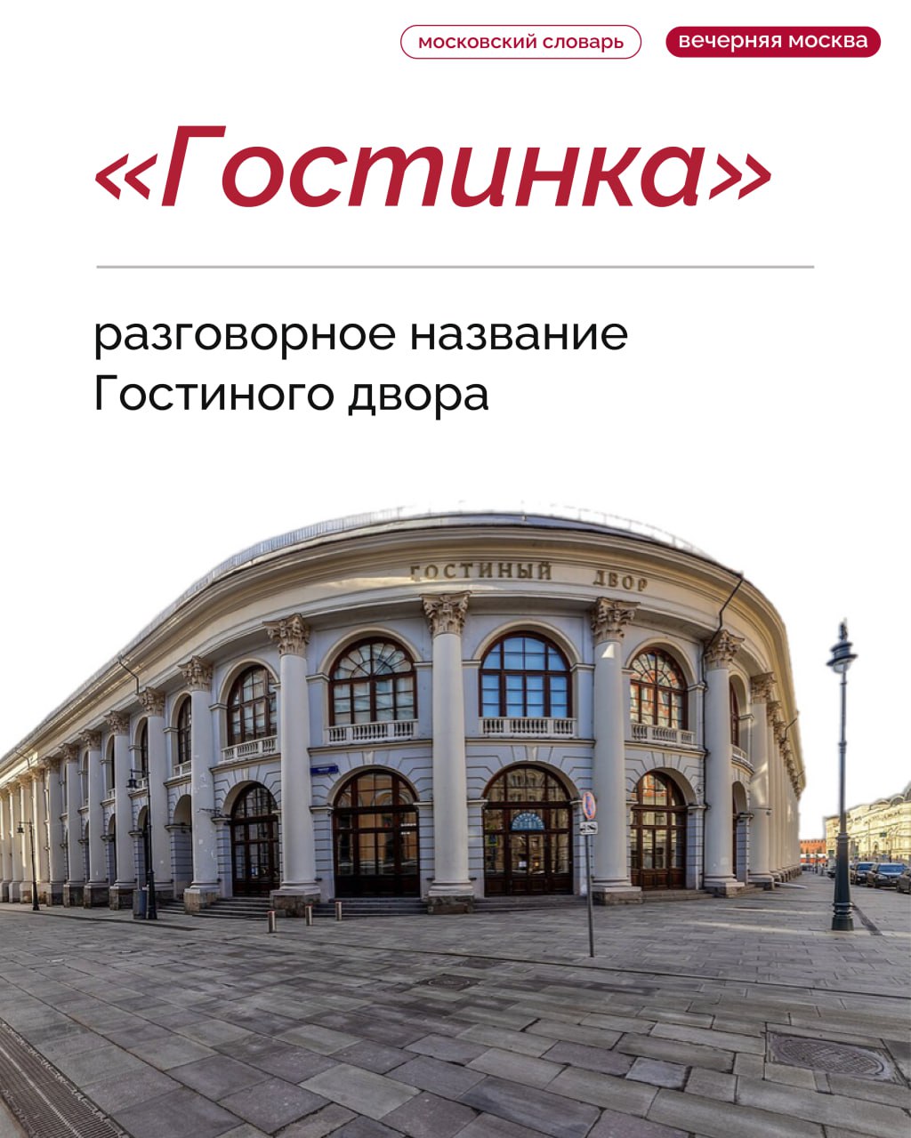 До милого слова «гостинка» сократили москвичи торжественно-пышное наименование самого большого и самого старого торгового здания столицы. Гостиный двор занимает почти целый квартал между улицами Ильинка и Варварка: раньше здесь торговали мясом и рыбой, а теперь проходят выставки, конференции и даже балы.
