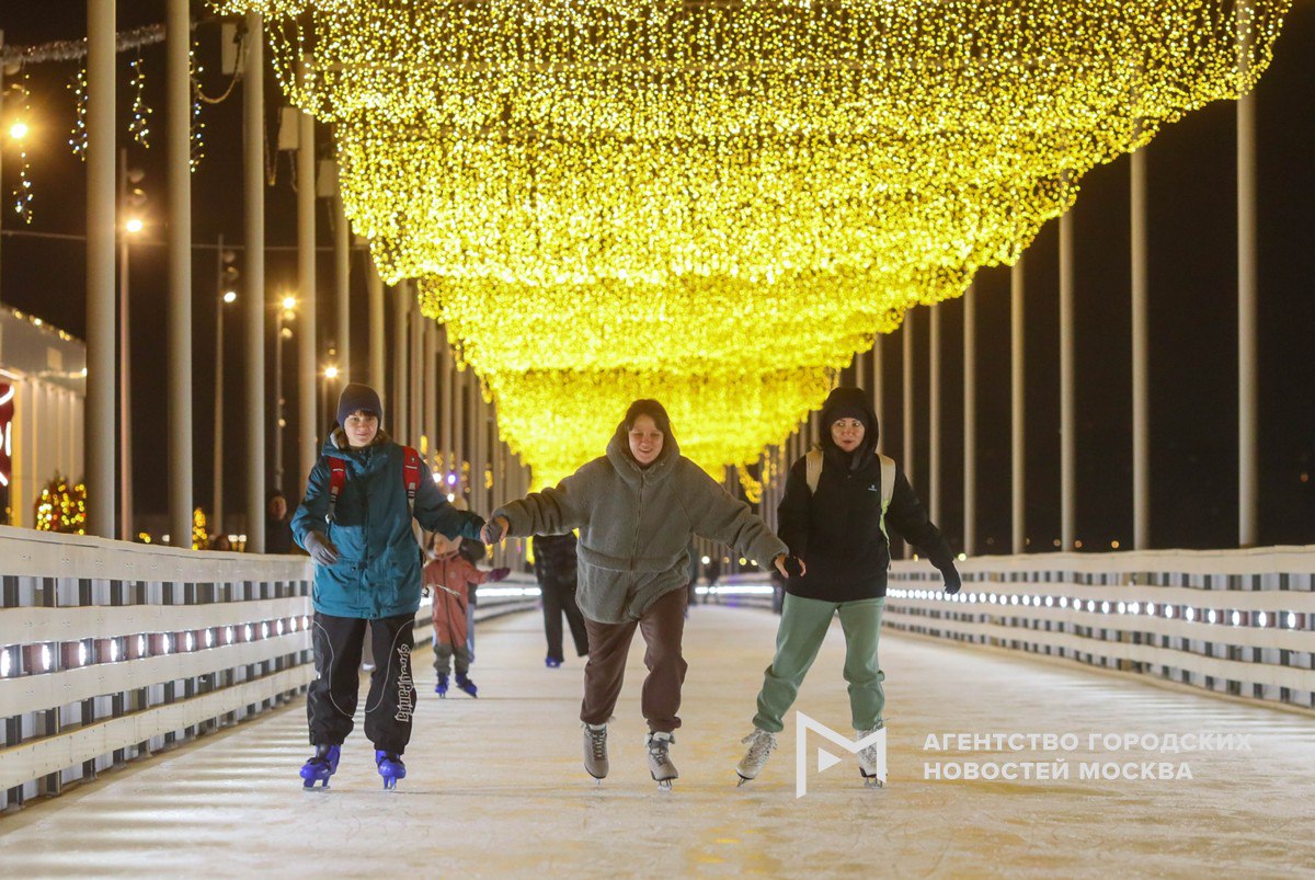Три месяца подготовки, чтобы даже в тёплую погоду можно было выйти на лёд: в Коломенском официально открыли один из самых длинных линейных катков в стране.