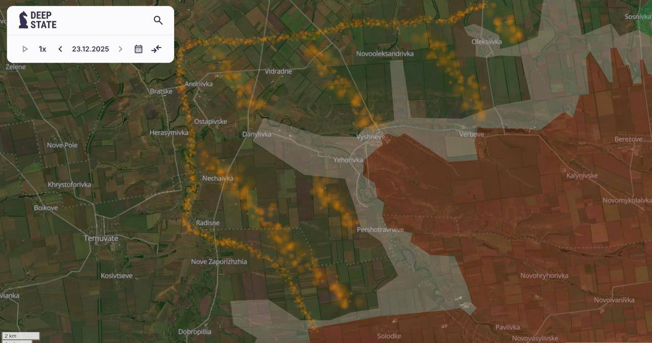 Карта украинского "аналитического" ресурса Deep State отстаёт от реальной ситуации в Днепропетровской и Запорожской областях более чем на месяц — игнорируя новые успехи ВС РФ, отмечает проукраинский военный обозреватель Bild Юлиан Репке.