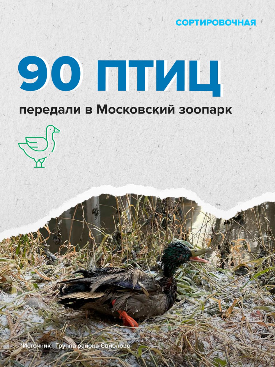 Волонтёры и просто неравнодушные люди передали в Московский зоопарк 90 уток, которые пострадали от загрязнённой воды на Яузе.