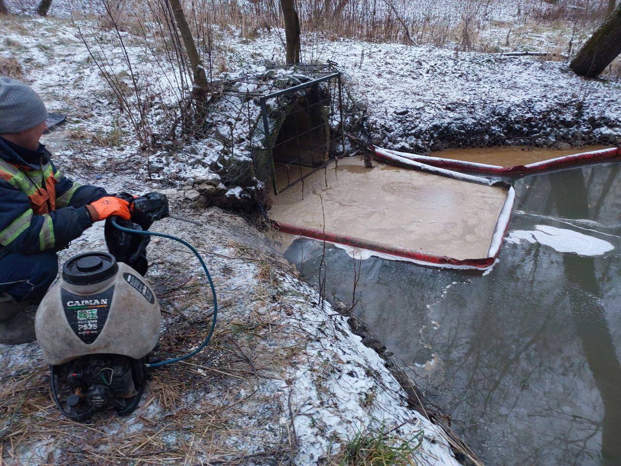 Специалисты обработали воду специализированным средством, а также установили дополнительное боновое заграждение.