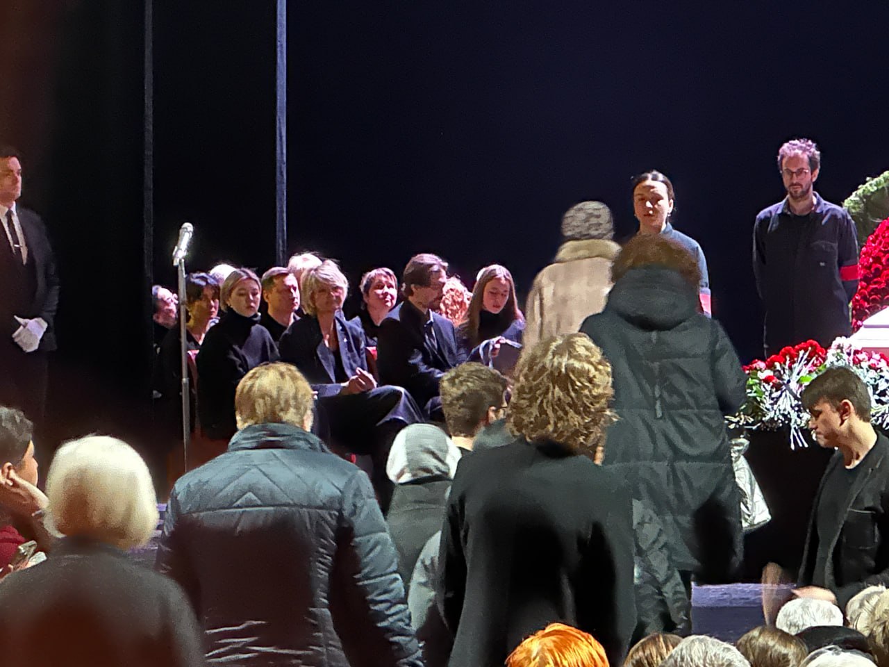 На траурной церемонии в Театре Пушкина — дочь Веры Алентовой Юлия Меньшова. С ней внуки