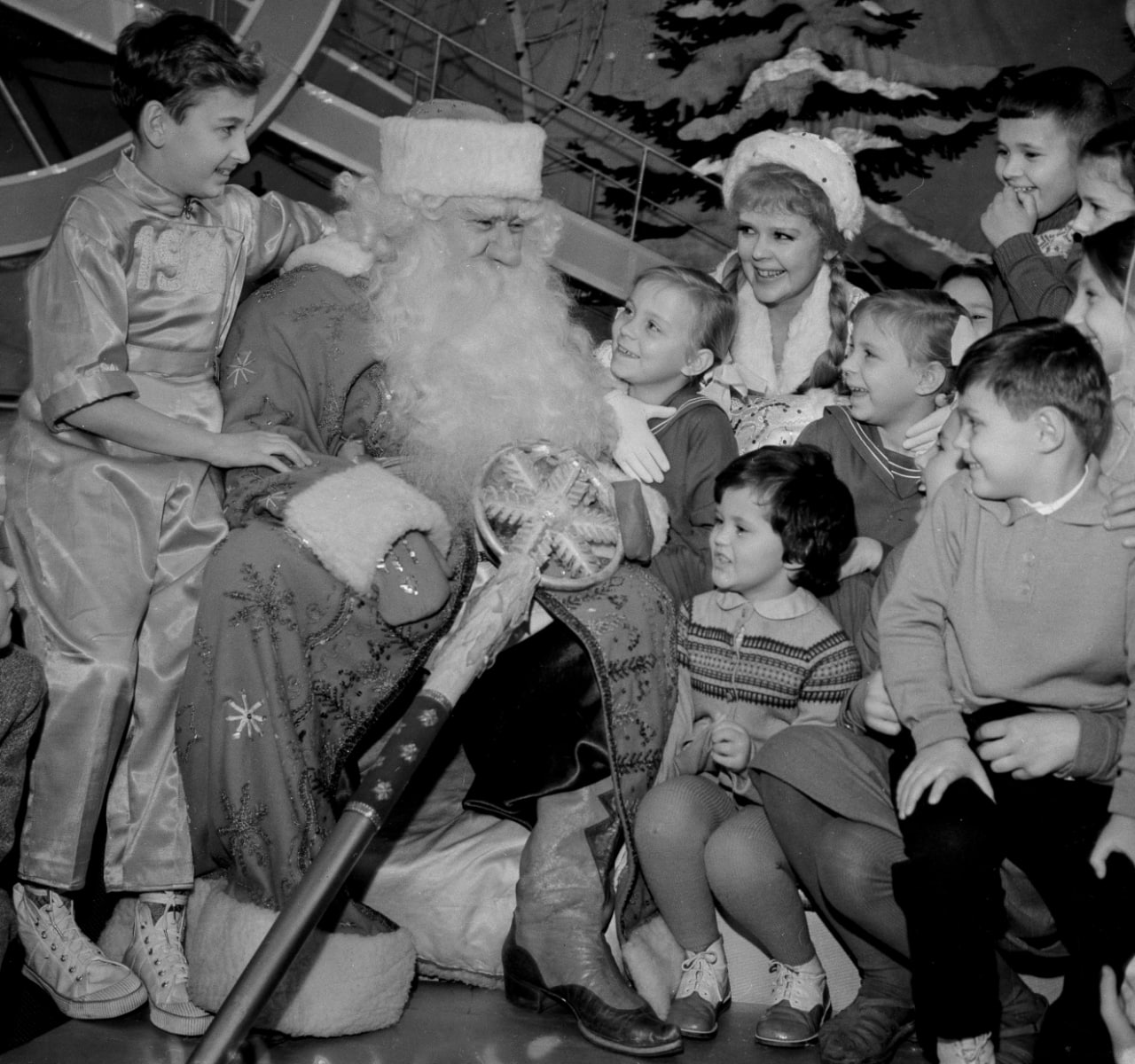 Идут года, меняются эпохи, но есть вещи, которые, наверное, никак не изменить: счастливый блеск в глазах детей, смотрящих на Деда Мороза и Снегурочку, есть и сегодня — таким же он был и полвека назад.