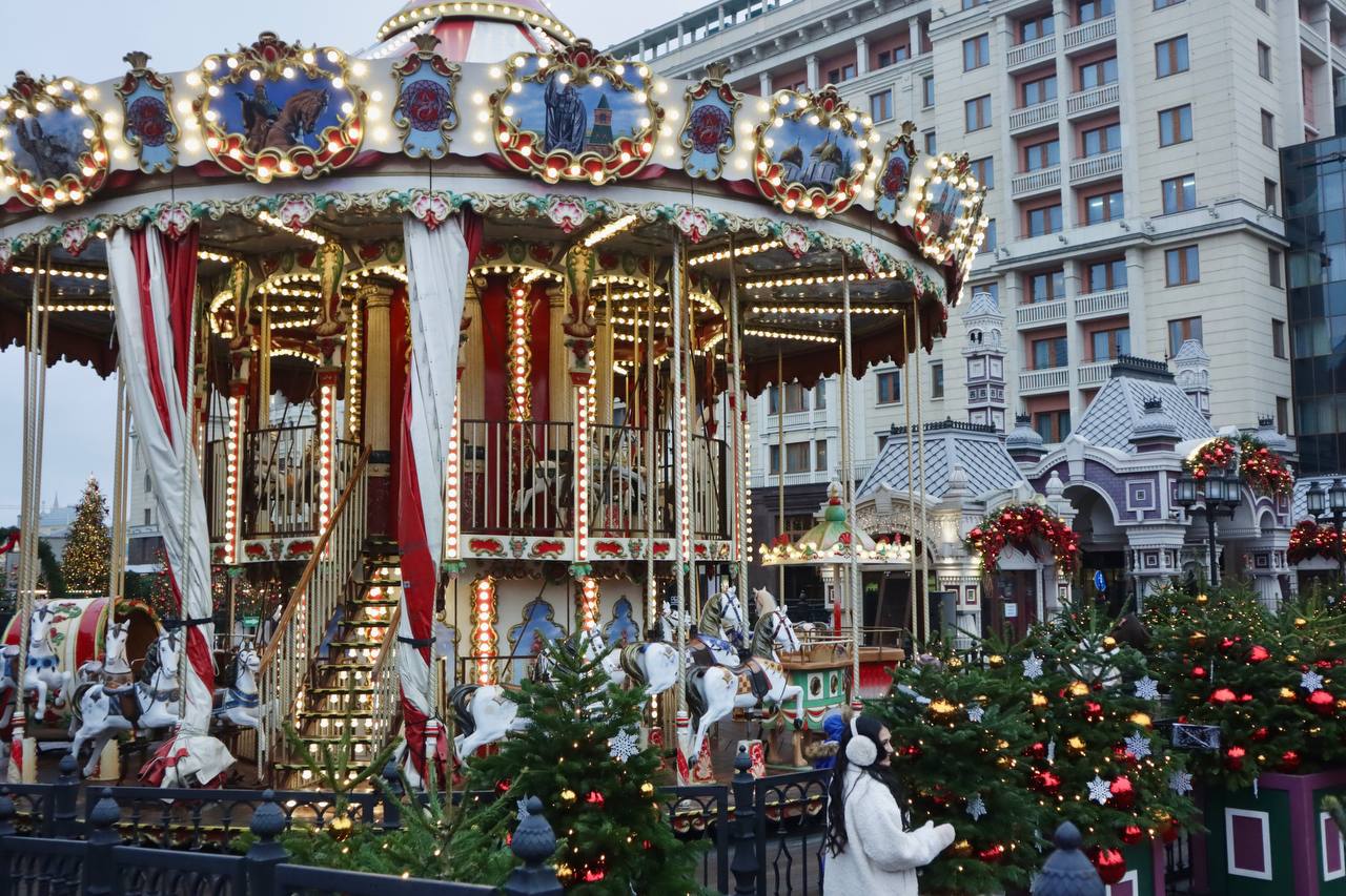 Увидеть ледовое шоу можно на площади Революции. Кроме стилизованного под старину катка, здесь появился настоящий сказочный городок, где можно: