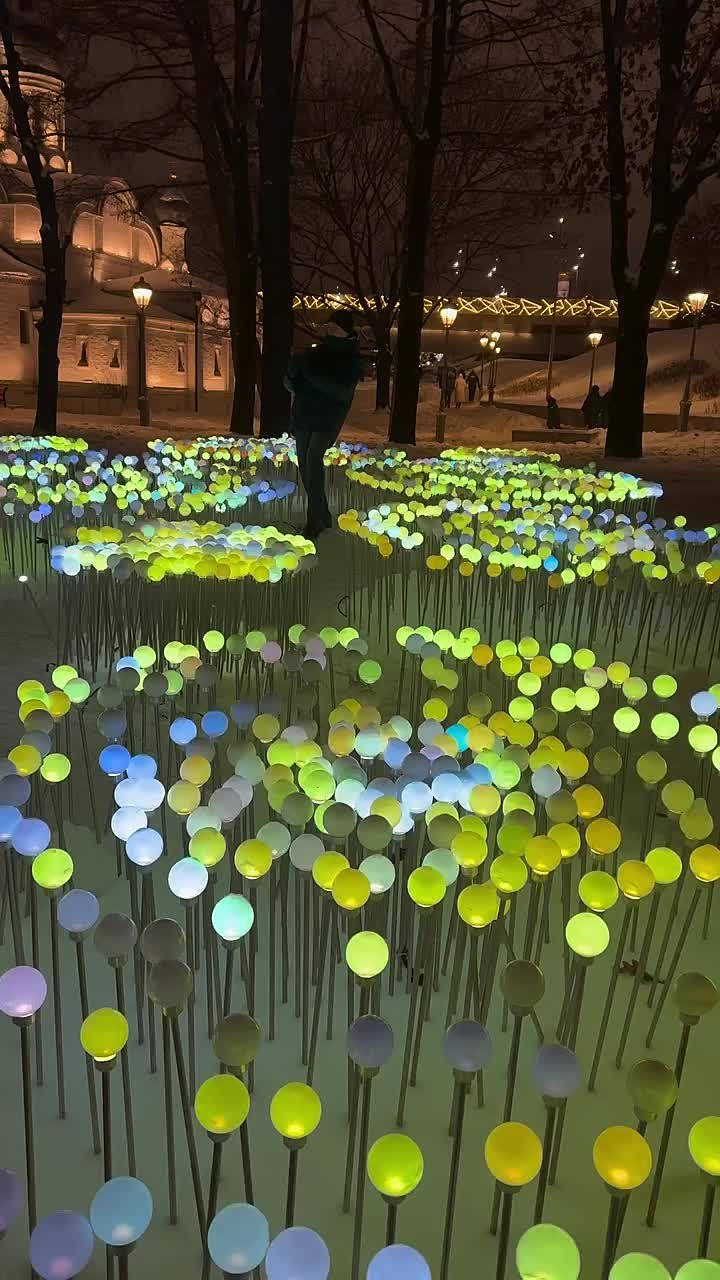 Волшебство — в каждом уголке любимого города. Тысячи разноцветных огоньков сияют в парке «Зарядье» прямо посреди снега.
