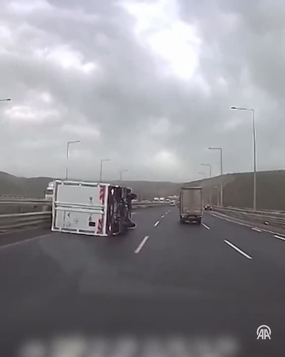В Турции ветер такой силы, что опрокидывает грузовики на трассе рядом со Стамбулом.