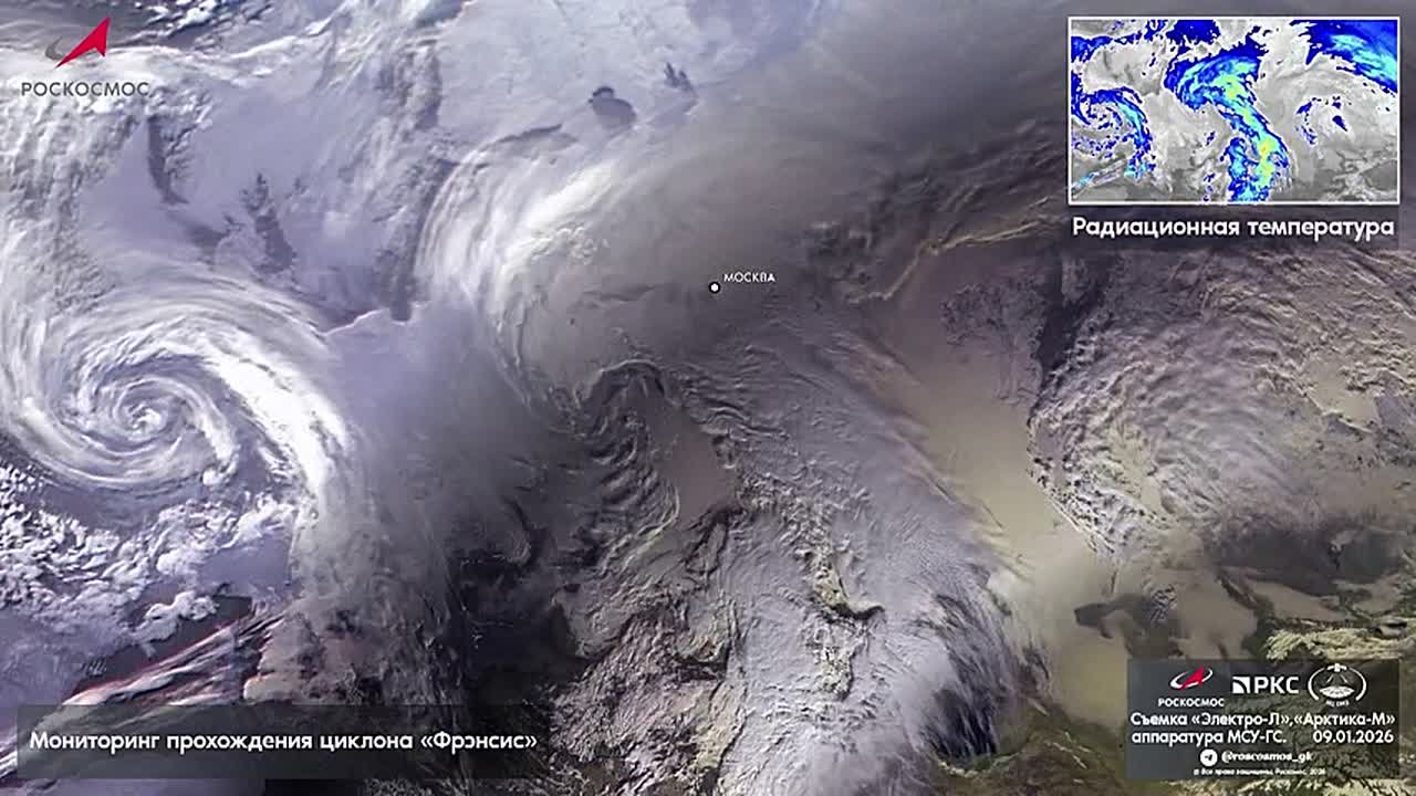 «Роскосмос» показал, как циклон "Фрэнсис", который принес в Москву аномальные осадки, приближался к столице.