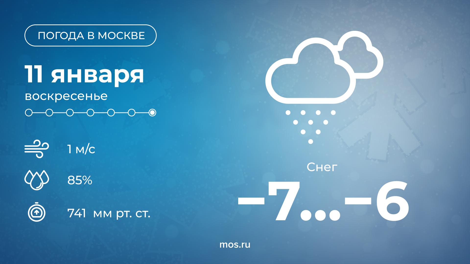 Доброе утро! Сегодня в Москве ожидается снег. Столбики термометров покажут от 7 до 6 °С.