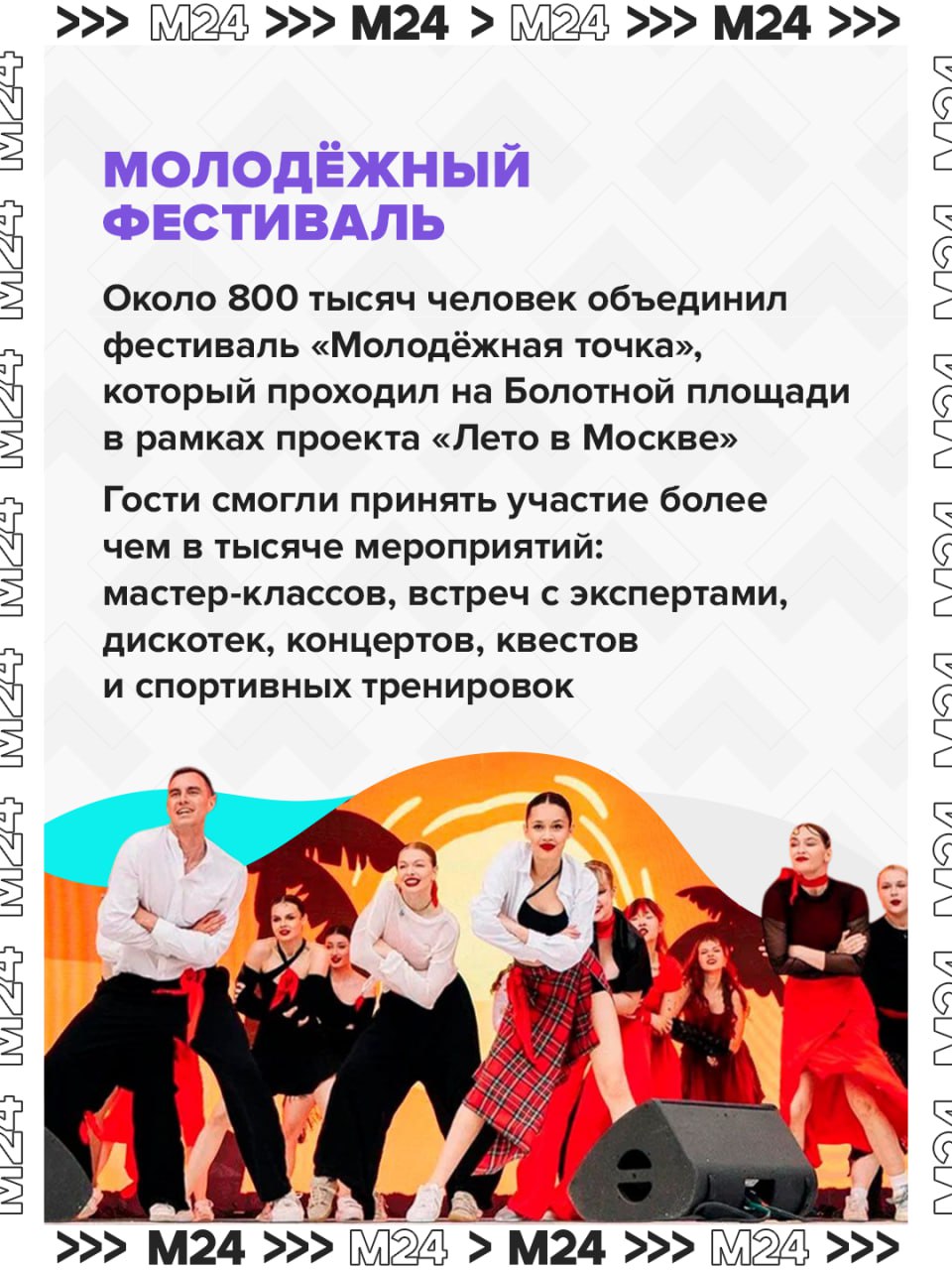А ещё в прошлом году в рамках проекта «Молодёжь Москвы» впервые открылся творческий лагерь в кинопарке «Москино». Об этих и других важных молодёжных событиях прошедшего года — в наших карточках