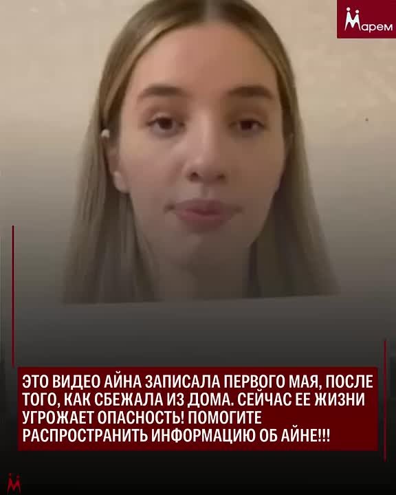 Задержанная инвалид по зрению. Она родилась в многодетной малообеспеченной семье, а после одного из эпизодов насилия серьезно заболела и 8 месяцев не выходила из дома, утверждают в Марем. В апреле, когда Айна решилась на побег, она записала видеообращение и просила не искать ее. По словам девушки, возвращение домой может угрожать ее безопасности и здоровью.