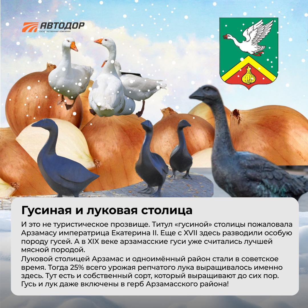 Арзамас притягивает тех, кто ценит паломничество, тишину и возможность побыть наедине с собой. Но за духовностью скрываются земные радости — гастрономия и маленькие городские удовольствия. Например, прогулка-квест в поисках арзамасских гусей — забавных символов, встречающихся в самых неожиданных местах.