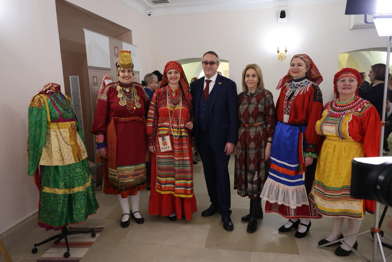 В Московской городской Думе открылась выставка народных костюмов «Красота традиций». В экспозиция – традиционные костюмы конца XIX – начала XX века из разных регионов России – от Центральной России до Русского Севера.