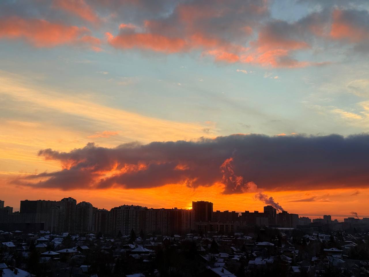 Москвичи заметили предвестника непогоды: закат окрасил небо в яркие цвета, а на горизонте возник гигантский КРОКОДИЛ.
