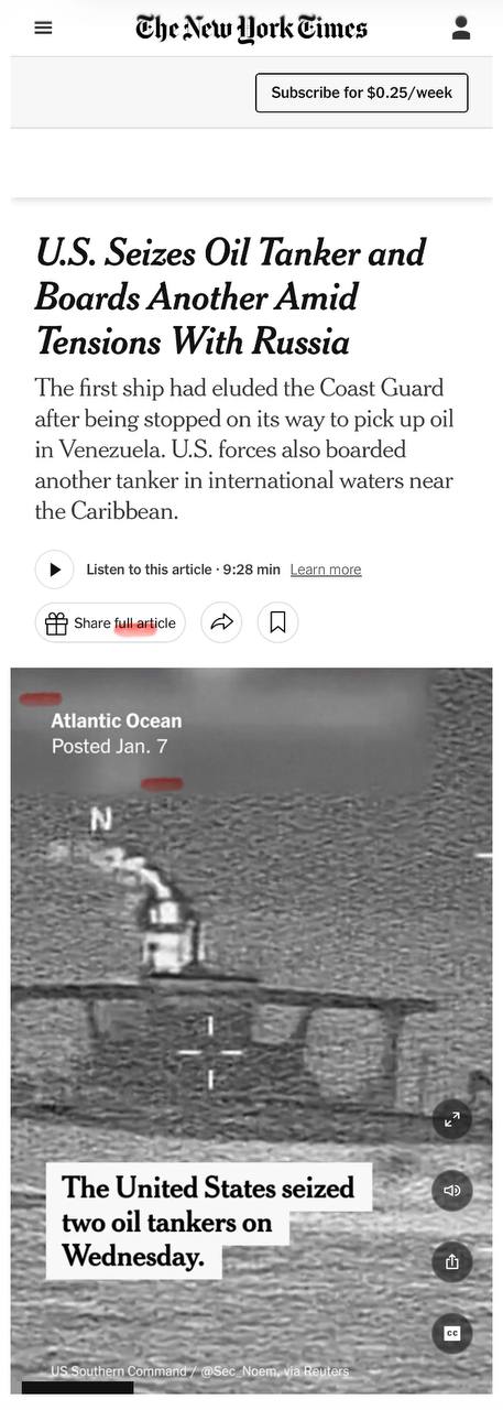 Пример: захват танкера под российским флагом в Атлантике. Формально операция была направлена против Венесуэлы, но в реальности выглядела как публичное унижение Москвы, особенно с учётом просьб РФ прекратить преследование судна.