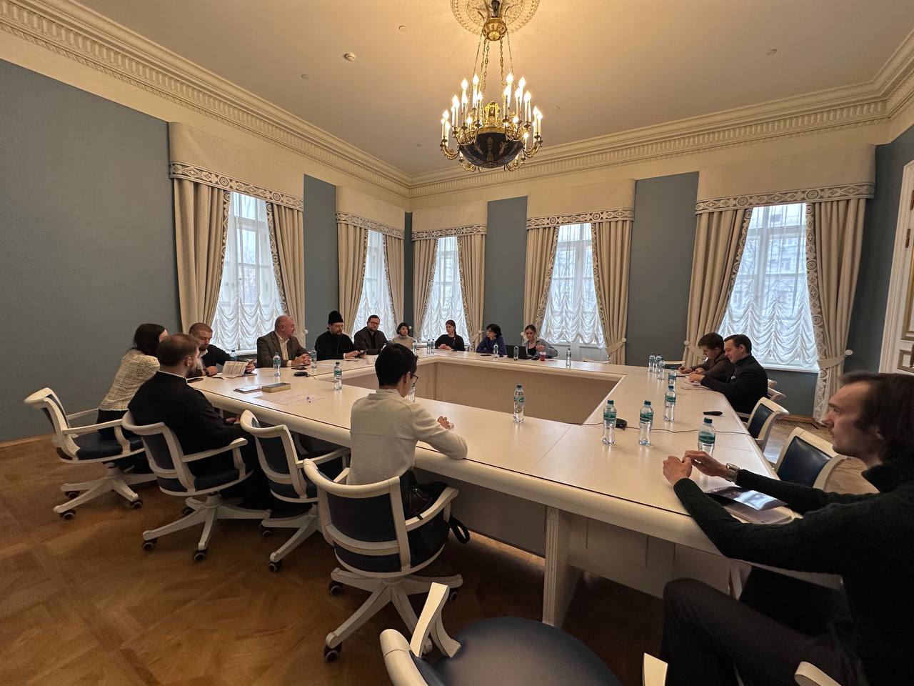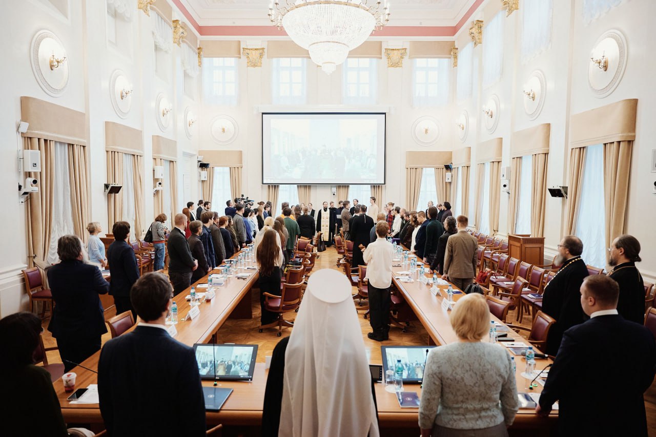 Перед началом заседания в зале ученого совета, располагающемся в помещении некогда бывшем домовой церковью св. блгв. кн. Александра Невского дома Дурасова был совершен молебен, песнопения которого исполнил студенческий хор Христианского клуба Высшей школы экономики.