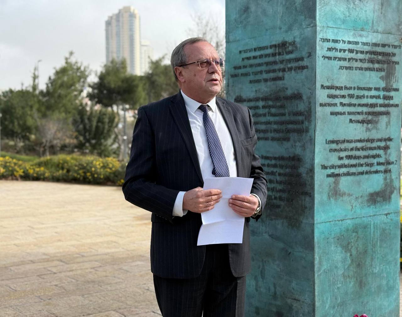 27 января в г. Иерусалиме по случаю 82-й годовщины полного освобождения Ленинграда от фашистской блокады и Международного дня памяти жертв Холокоста Посол России в Израиле А.Д.Викторов принял участие в церемонии возложения венков и цветов к Монументу героическим защитникам и жителям блокадного Ленинграда «Свеча памяти».