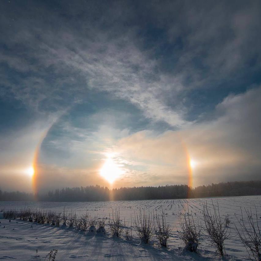 Четыре луны и три солнца взошли ночью и утром над Москвой и Санкт-Петербургом. Парселена, или ложная луна, и паргелий (ложное солнце) явления нечастые. Такая красота появляется благодаря игре света и льда. Оптический эффект возникает при низких температурах и высокой влажности воздуха.