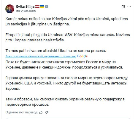 Силиня, не скрываясь, добавила, что только так ЕС сможет полноценно поддержать Киев в переговорном процессе.