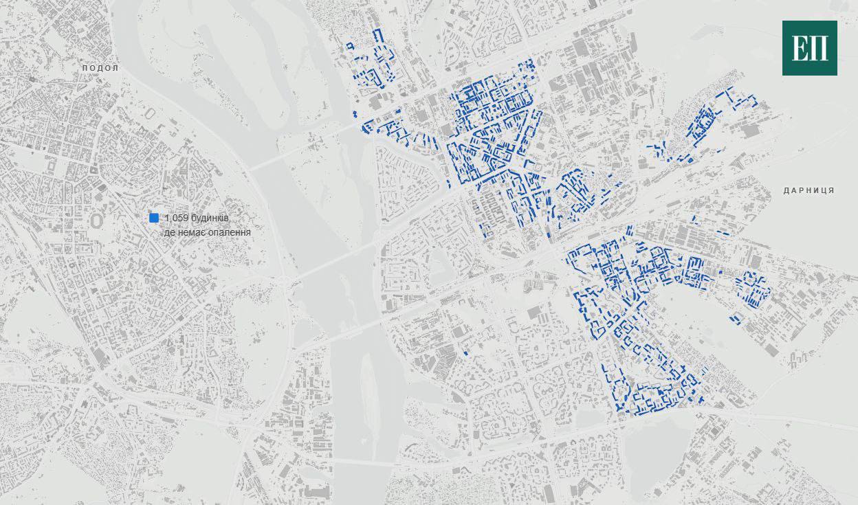 Противник утверждает, что из-за серьезных повреждений Дарницкой ТЭЦ, которая потребует месяцы ремонта, часть левобережья Киева на всю зиму и часть весны осталась без отопления. Также в Киеве сохраняются серьезные проблемы с электроснабжением.
