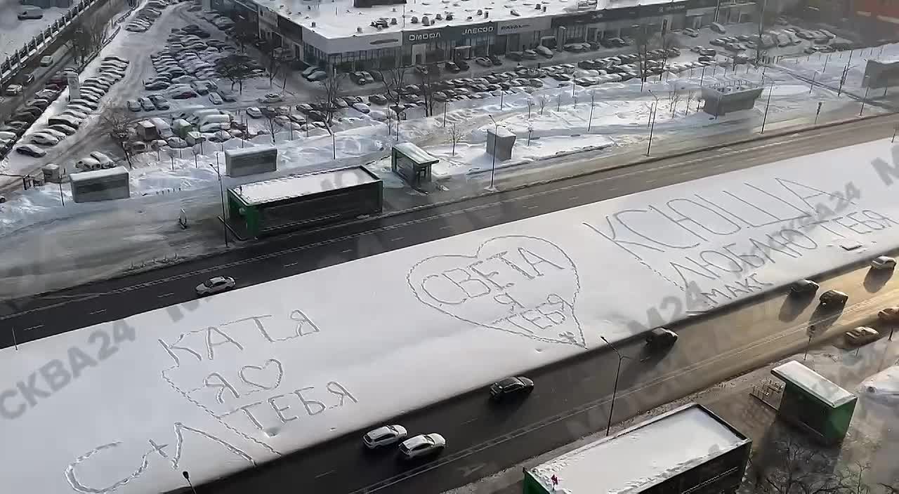 оставили поздравления с днём влюблённых прямо на снегу под окнами.