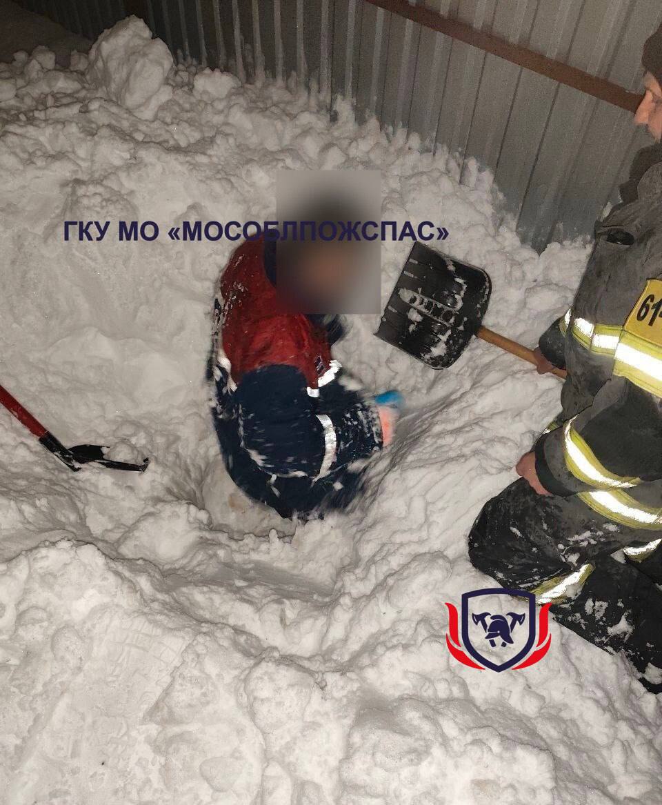 На место сразу приехали спасатели Мособлпожспас. Жителя быстро откопали и передали врачам скорой помощи — травмы оказались несерьёзными.