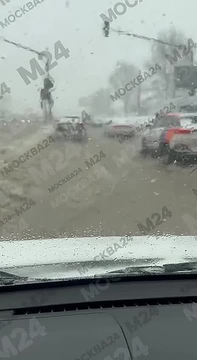 По словам очевидцев, в районе что-то прорвало. Машины плывут. Вода перетекает на встречную полосу.