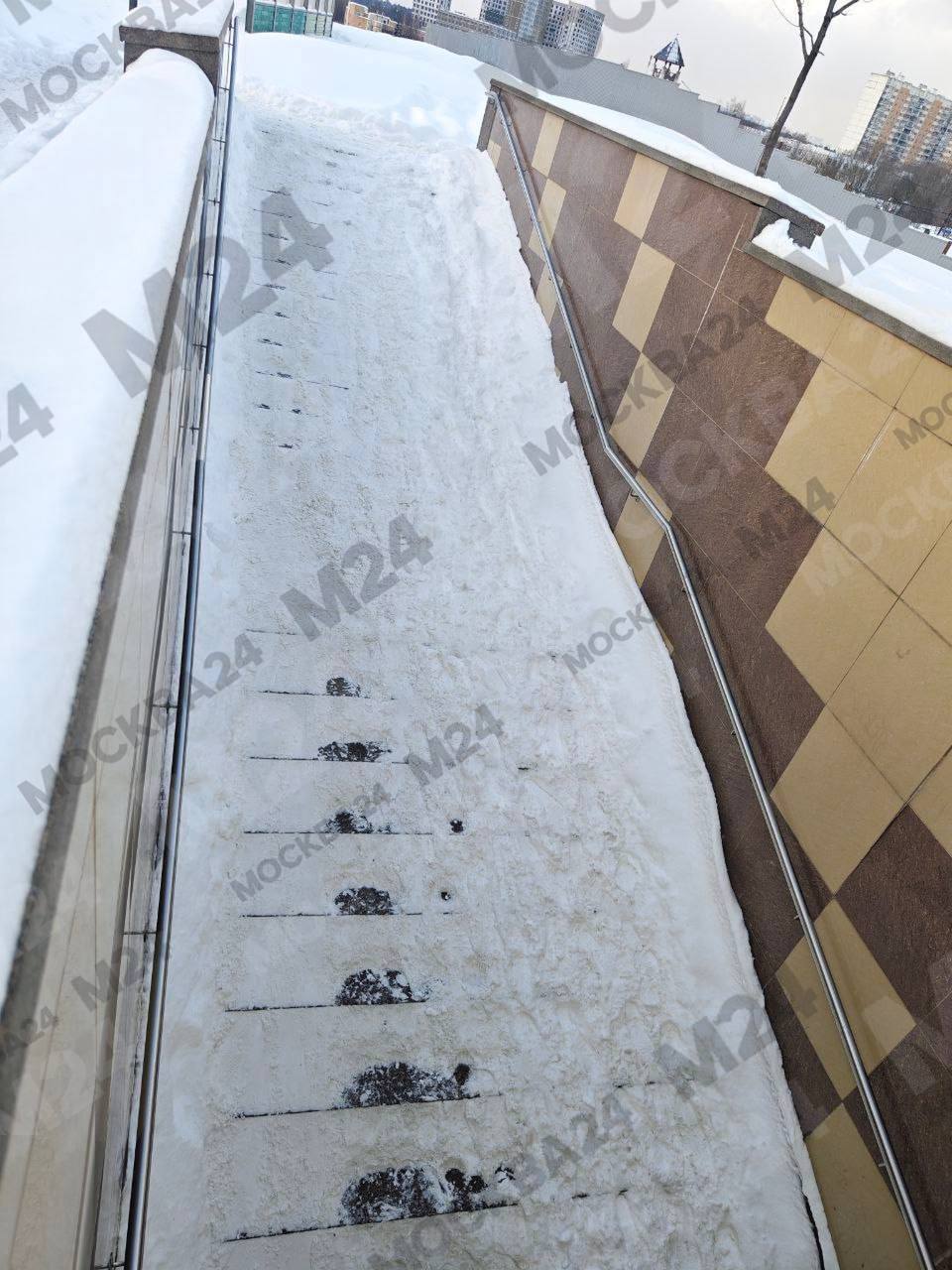 Подземный переход превратился в крутую горку в микрорайоне Переделкино Ближнее.