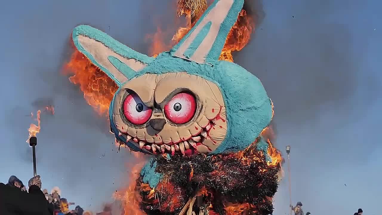 Трёхметровая игрушка сгорела и «очистила российскую культуру от всего чуждого», заявили организаторы.