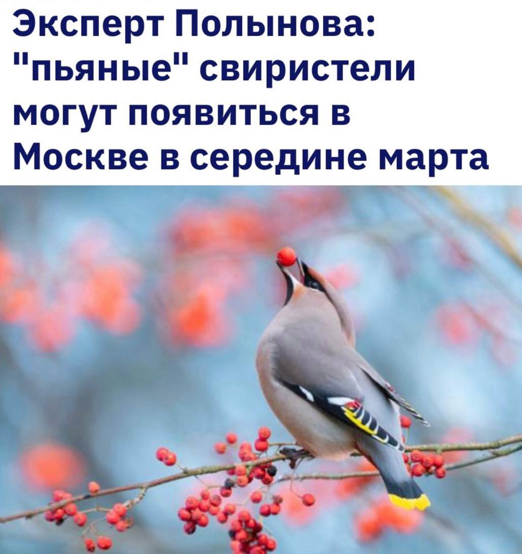 «Пьяные свиристели могут появиться в Москве в середине марта»: Птицы будут пьянеть от перебродившей рябины или боярышника.