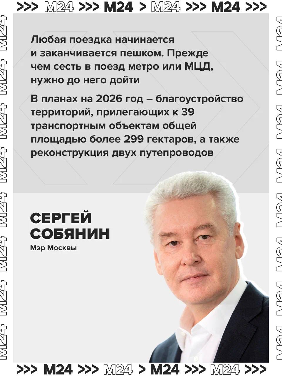 В этом году в Москве благоустроят улицы рядом с 39 транспортными объектами. Это больше 299 гектаров! А также реконструируют два путепровода.