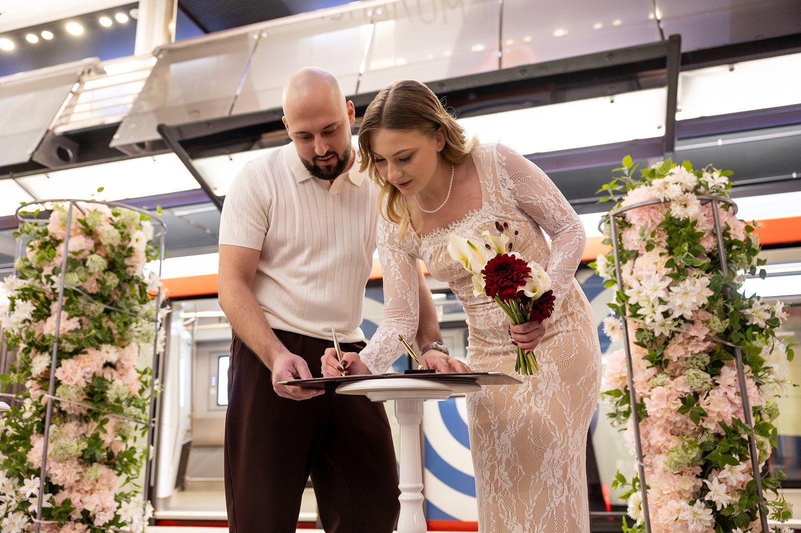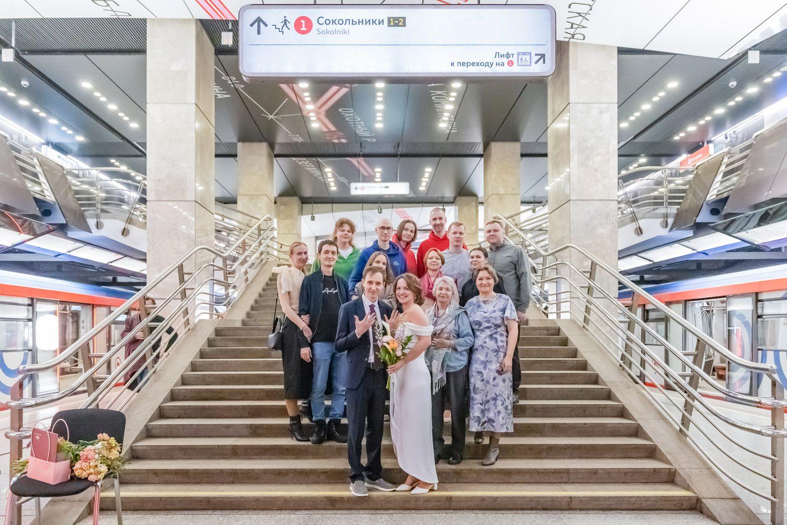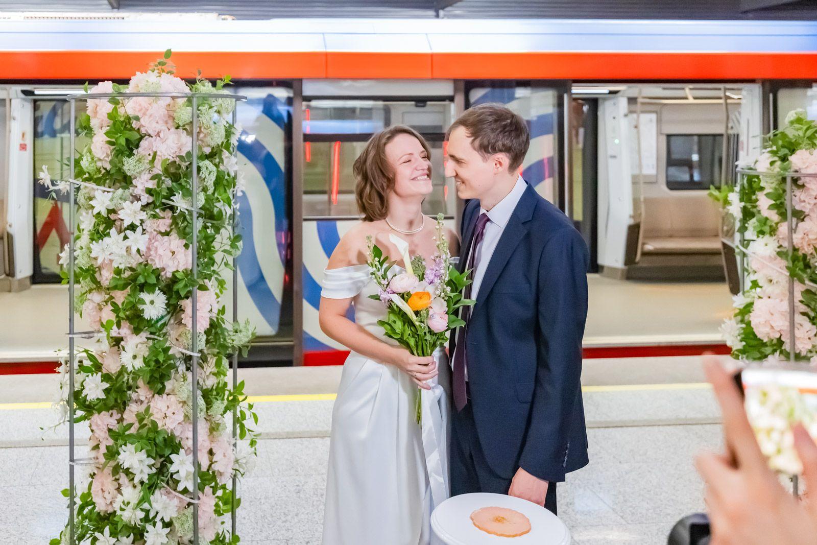 В Москве впервые прошли четыре церемонии бракосочетания на станции «Сокольники» БКЛ метро. Молодожены обменялись кольцами в центре зала под звуки марша Феликса Мендельсона. На путях торжественную регистрацию сопровождали составы «Москва-2020» и «Москва-2024».