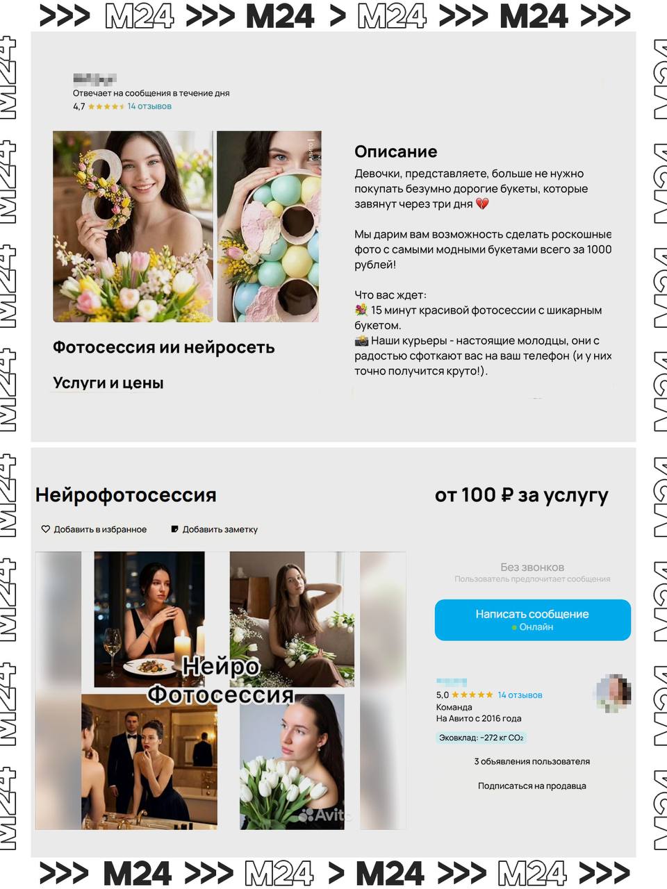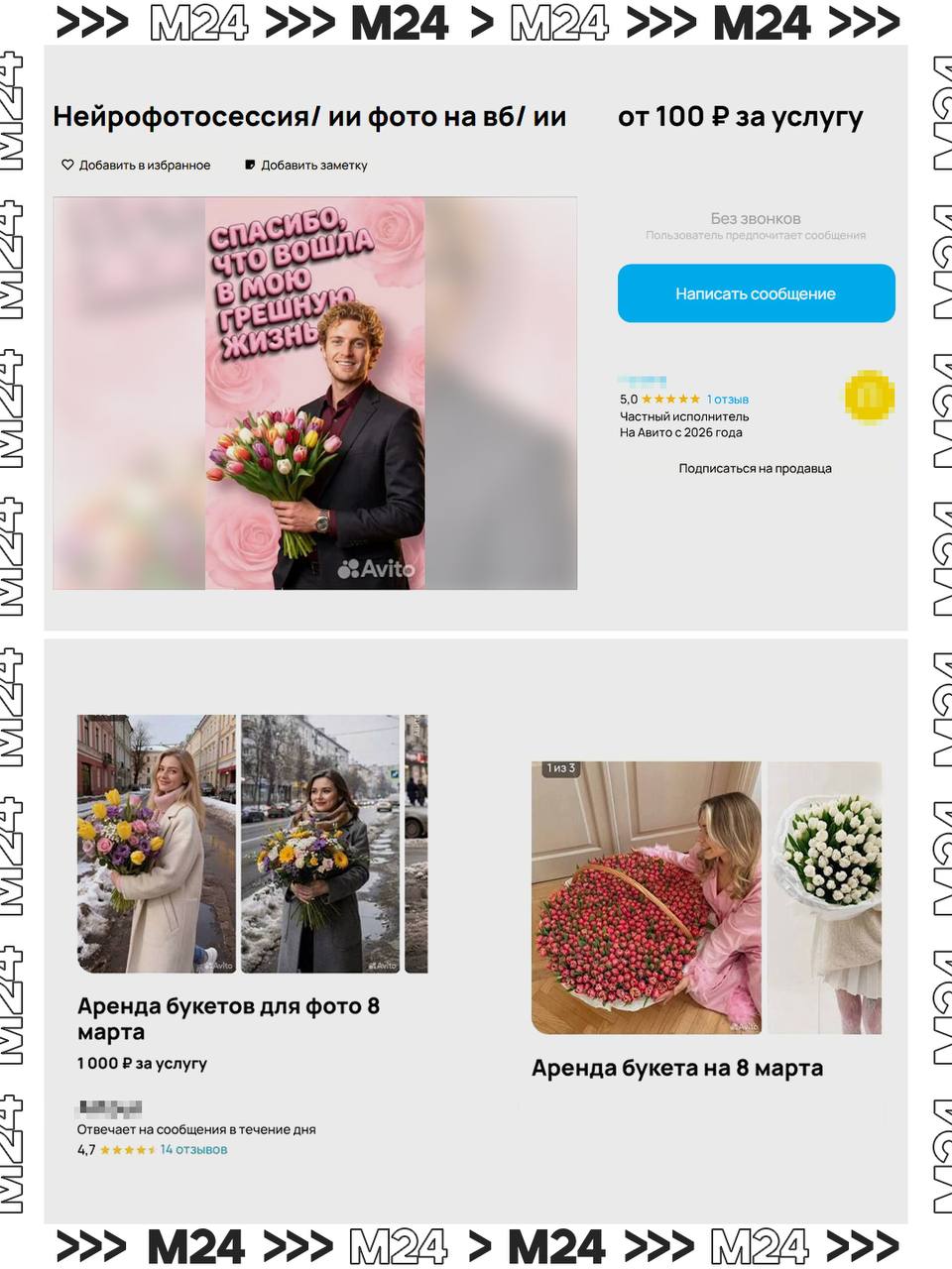 Более бюджетный вариант — фотосессии силами ИИ. Здесь любая прихоть — стартовая цена 100 рублей.