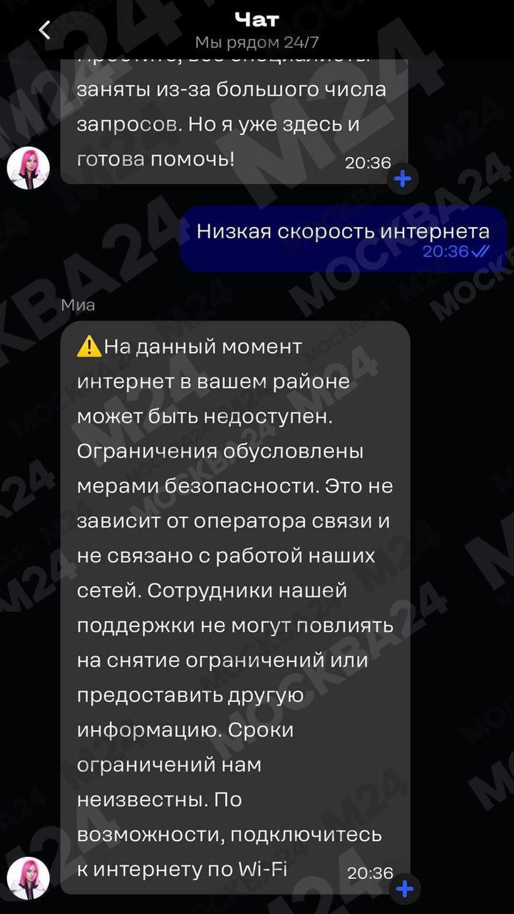 Мобильный интернет в Москве не работает из-за «внешних ограничений».