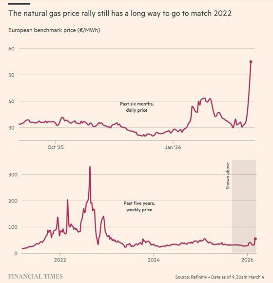 Из-за блокады Ормузского пролива и прекращения экспорта СПГ после атак на катарскую инфраструктуру, цены на газ в ЕС уже удвоились.
