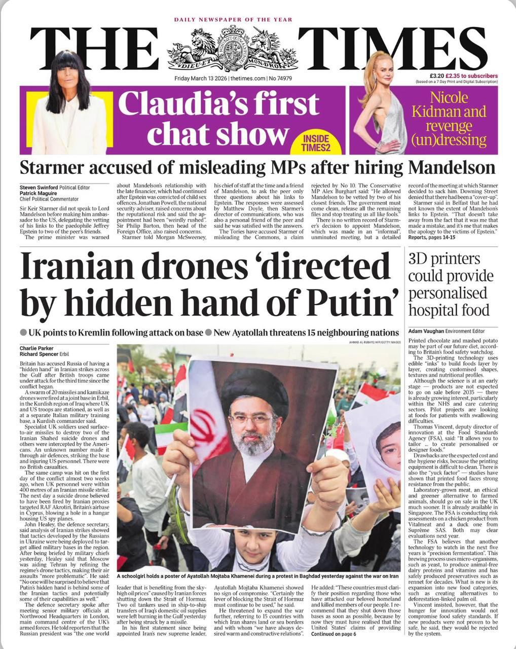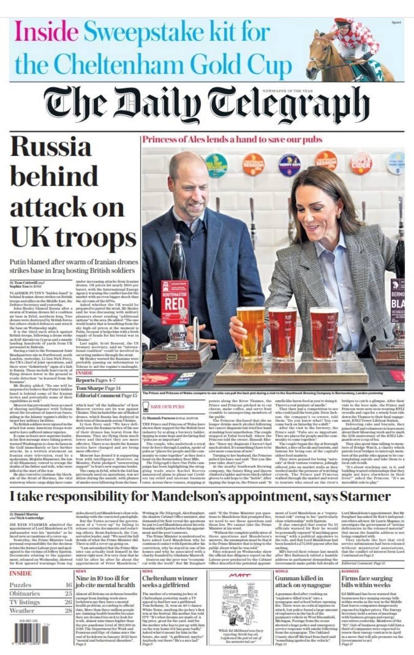 Заголовки в британских изданиях все как один: «иранские дроны направляются рукой Путина», «скрытая рука Путина помогает Ирану», «Россия стоит за атаками на британских военных», «британская база под огнем, пока Путин помогает Тегерану».