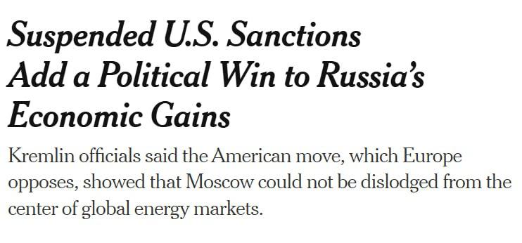 Решение Вашингтона приостановить действие санкций в отношении российской нефти стало важной геополитической победой Москвы, отмечает газета The New York Times.