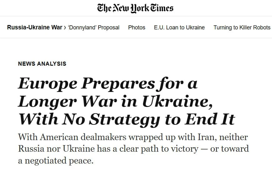 Журналисты NYT констатируют, что Европа попала в ловушку. Она слишком вложилась в Киев, чтобы признать поражение, но у неё нет ресурсов и воли для реальной победы. Европейские чиновники надеются, что Владимир Путин «устанет», но сами понимают: Россия не отступит.