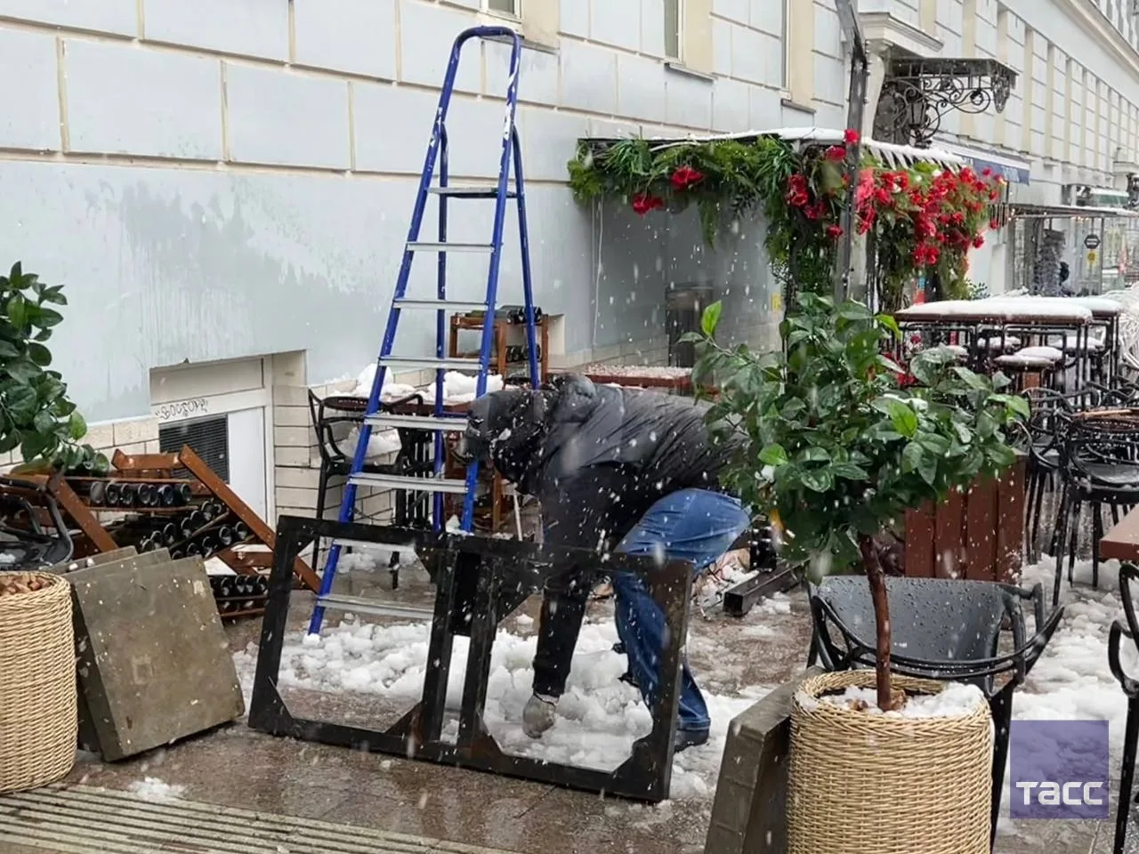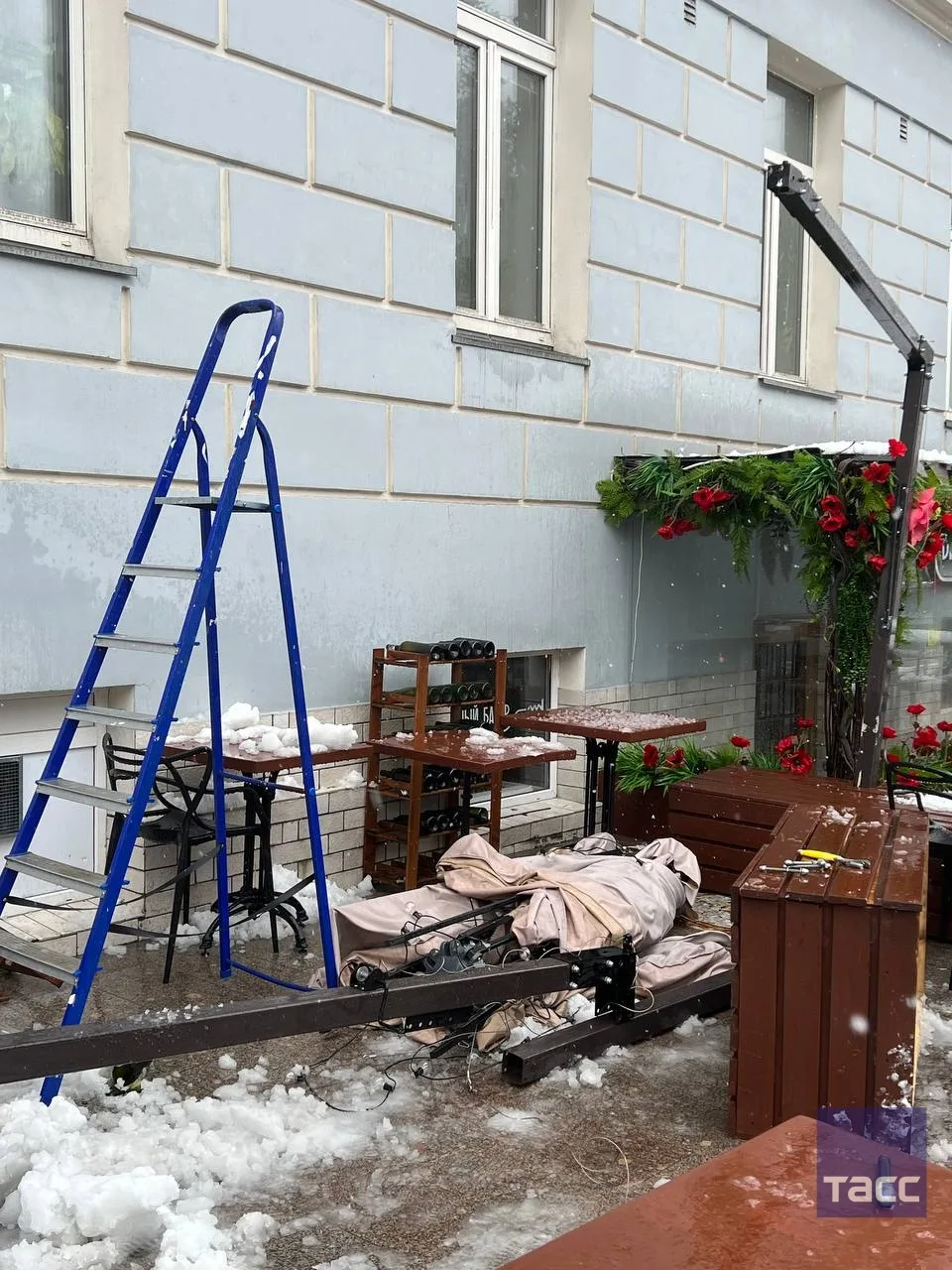 Летняя веранда в Москве не выдержала апрельского снегопада