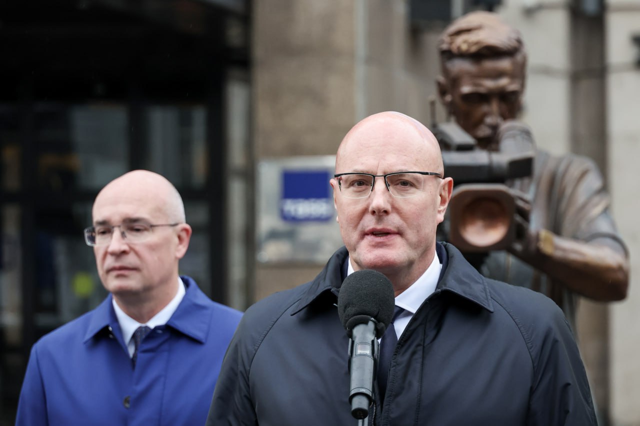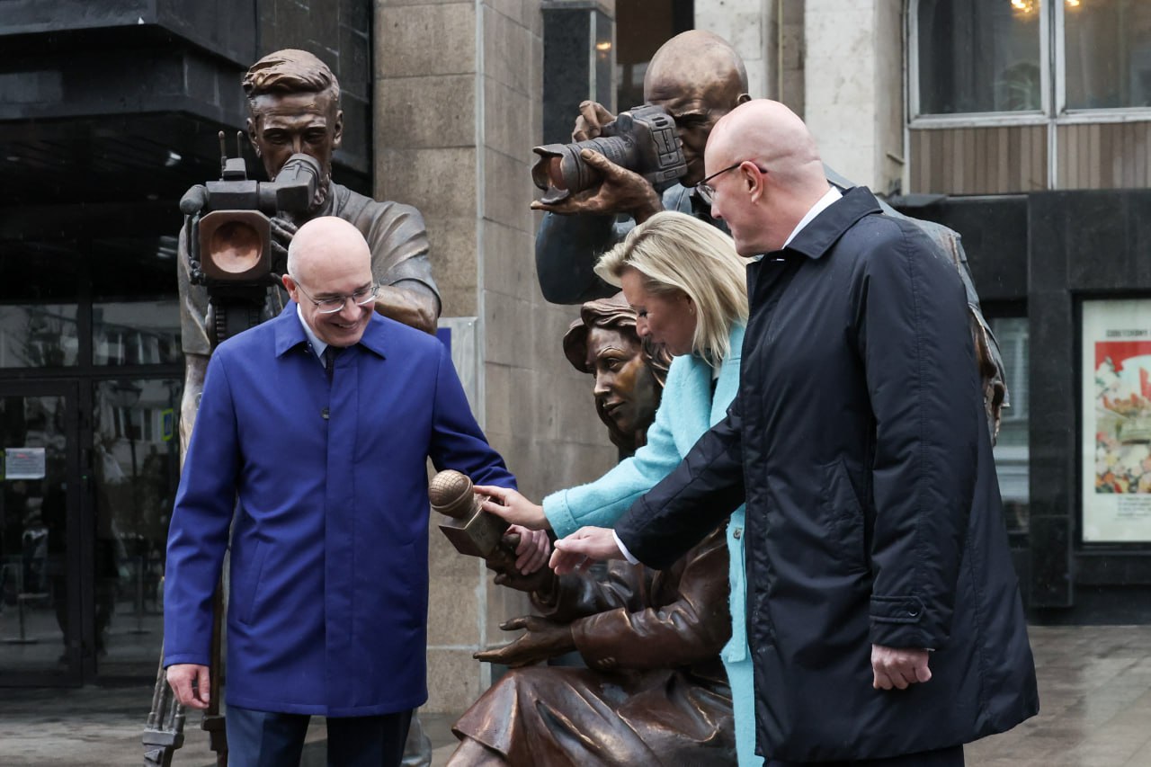 Вице-премьер Дмитрий Чернышенко принял участие в церемонии открытия скульптурной композиции «Российские журналисты».