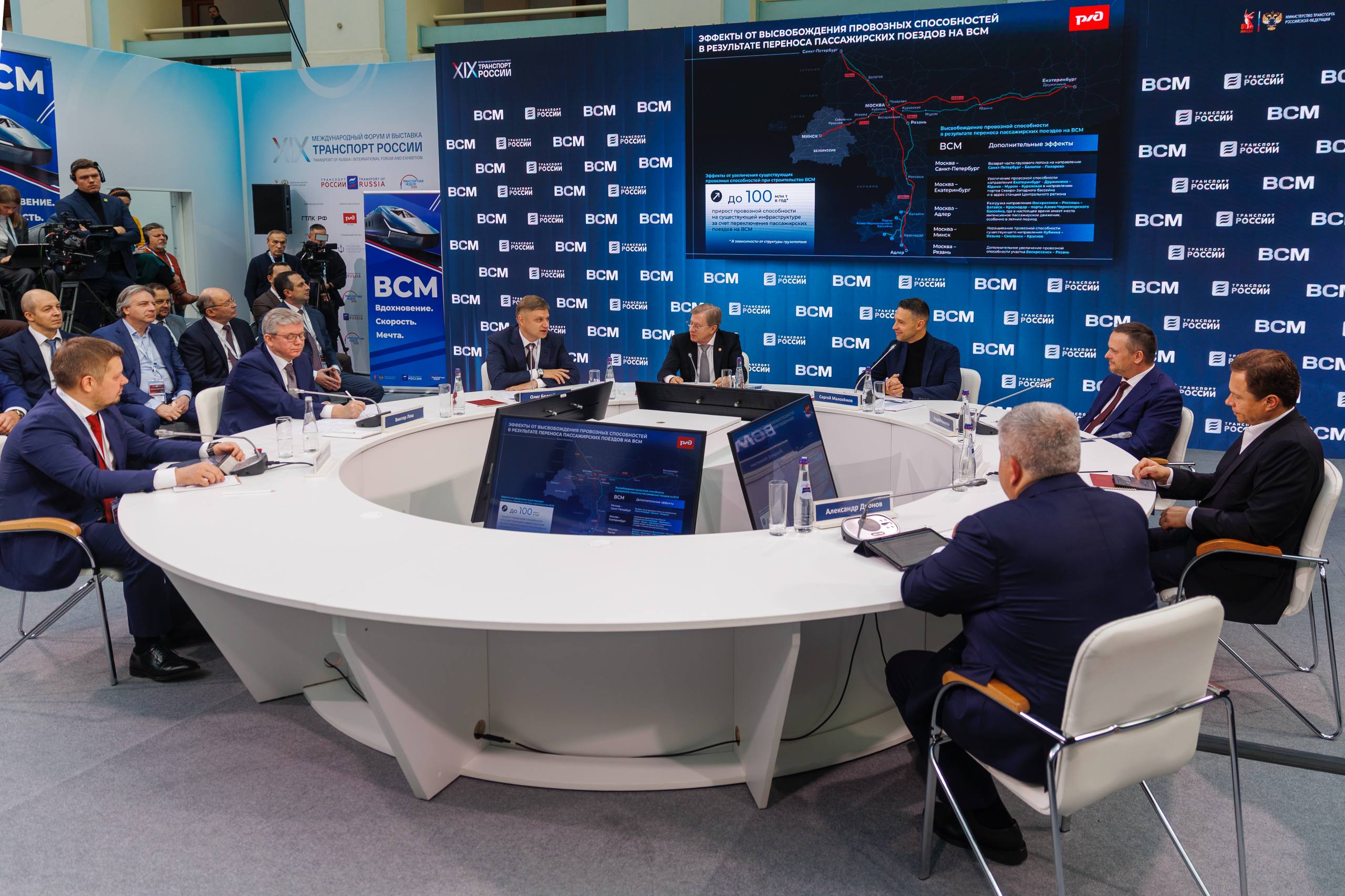 Участники обсудили планы по развитию утвержденной Президентом сети из пяти высокоскоростных железнодорожных магистралей, а также строительство первой линии ВСМ Москва – Санкт-Петербург.
