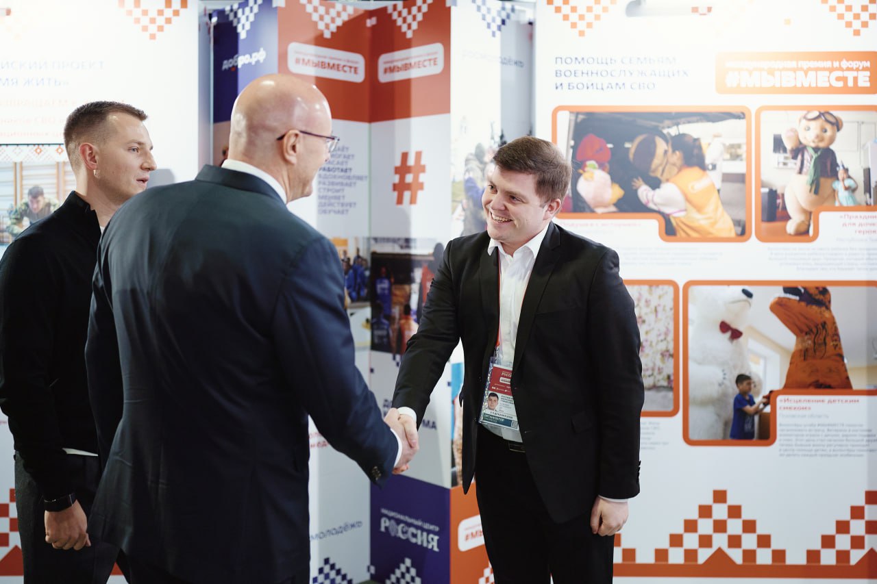 Дмитрий Чернышенко также оценил выставку добровольческих достижений и пообщался с волонтерами. Например, ему представили проект по реабилитации животных, пострадавших в зоне СВО.