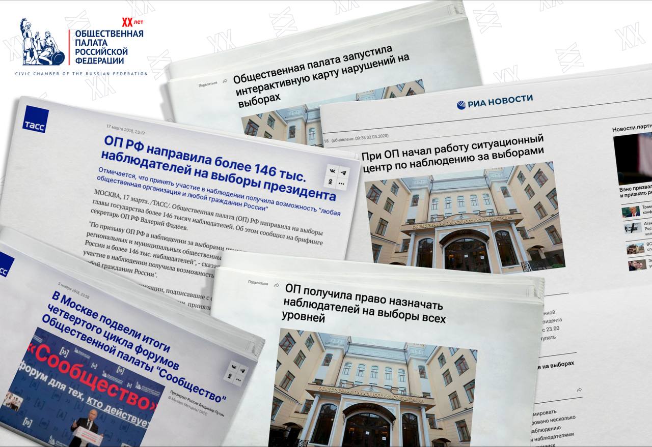 В 2018 году ОП РФ сыграла ключевую роль в обеспечении прозрачности выборов Президента России. ОП РФ направила более 146 тысяч наблюдателей, координируя их работу через ситуационный центр и интерактивную карту нарушений общественныйнаблюдатель.рф. После выборов полномочия общественных палат по наблюдению были расширены законодательно, позволив им назначать наблюдателей на выборах всех уровней.